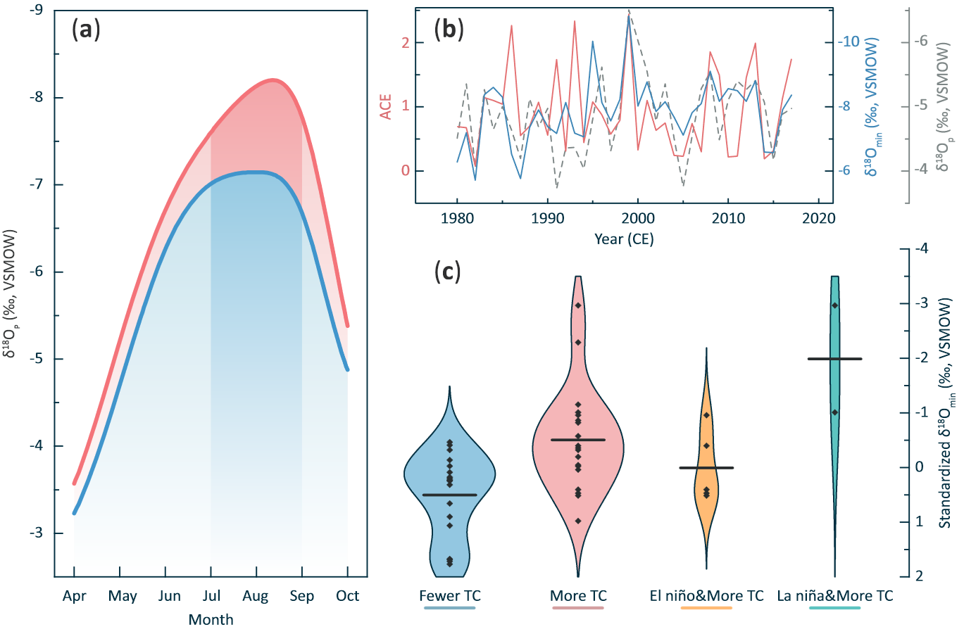 热带气旋是全球最严重的自然灾害之一。据统计,全球每年超五亿人受到热带气旋活动的影响。重建过去的热带气旋活动,理解其演变机制、并预测未来变化对防灾减灾和社会可持续发展意义重大。然而,当前热带气旋重建主要依赖于海洋与沿海地区的地质载体,陆地记录非常匮乏。洞穴石笋被认为能记录热带气旋降水的异常氧同位素(δ18O)信号,具有重建长期高分辨率的热带气旋陆地活动的潜力。尽管西北太平洋是全球热带气旋最活跃的地区,但该地区尚无基于石笋的热带气旋重建研究。