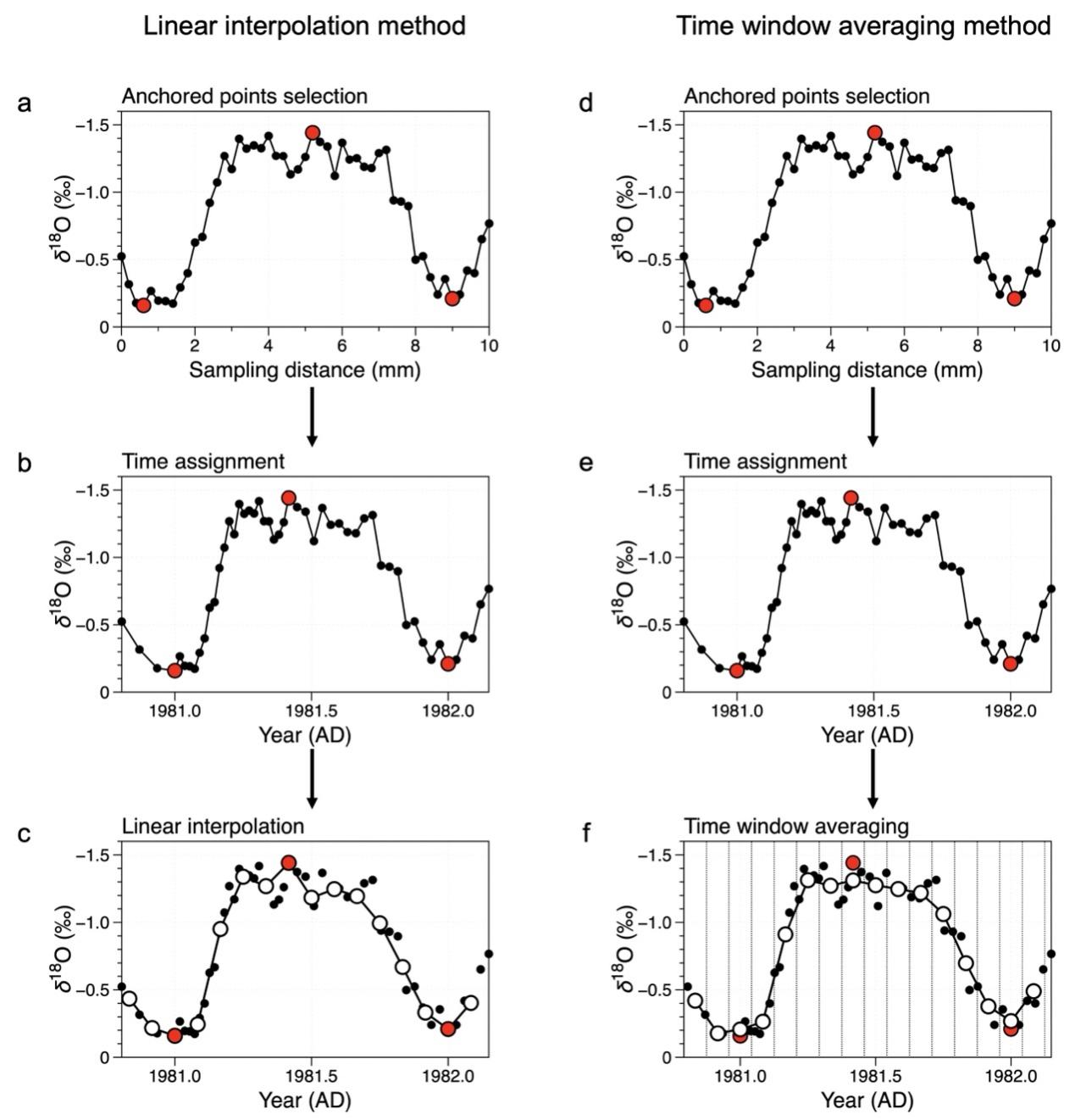 图4. 线性插值法与窗口平均法在真砗磲记录中的对比