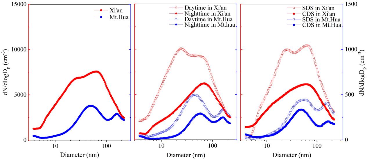 基于此,中国科学院地球环境研究所气溶胶理化过程及环境效应团队于2020年夏季在关中平原华山地区和西安市区开展了大气环境综合观测研究,同时观测了华山山顶(海拔约2065 m)和西安气溶胶数浓度、粒径分布和NPF事件的发生发展,结果显示:(1)西安市和华山的总颗粒物数浓度日变化存在差异,表明影响因子存在差异。西安市在不同时间尺度和气象条件下的粒径分布存在差异,而华山的变化不大。华山的这种稳定性归因于其更清洁的背景大气和从自由对流层大气更大粒径的老化颗粒的稳定流入。(2)在这两个地区,几何平均直径(GMDs)与颗粒数浓度成反比,表明颗粒数的增加主要是由于产生了更小的颗粒。(3)城市站和高山站之间NPF事件的潜在控制因素有所不同。在城市地区,强烈的局地固定和移动排放源促进了新形成的纳米颗粒生长,臭氧氧化的可冷凝蒸汽是关键前体物。而在高山地区,NPF过程受远距离传输人为前体物和局地排放生物源有机物的共同影响。本研究对关中地区新粒子形成发生发展的潜在因素及化学机制提供了新的科学认识。