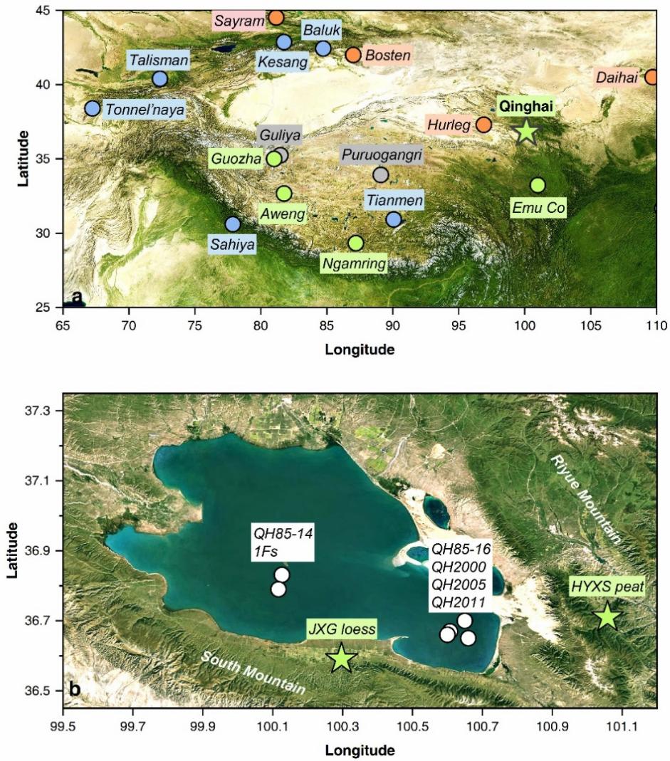 图1 研究区地图,黄土和泥炭剖面位于青藏高原东北部青海湖周边地区