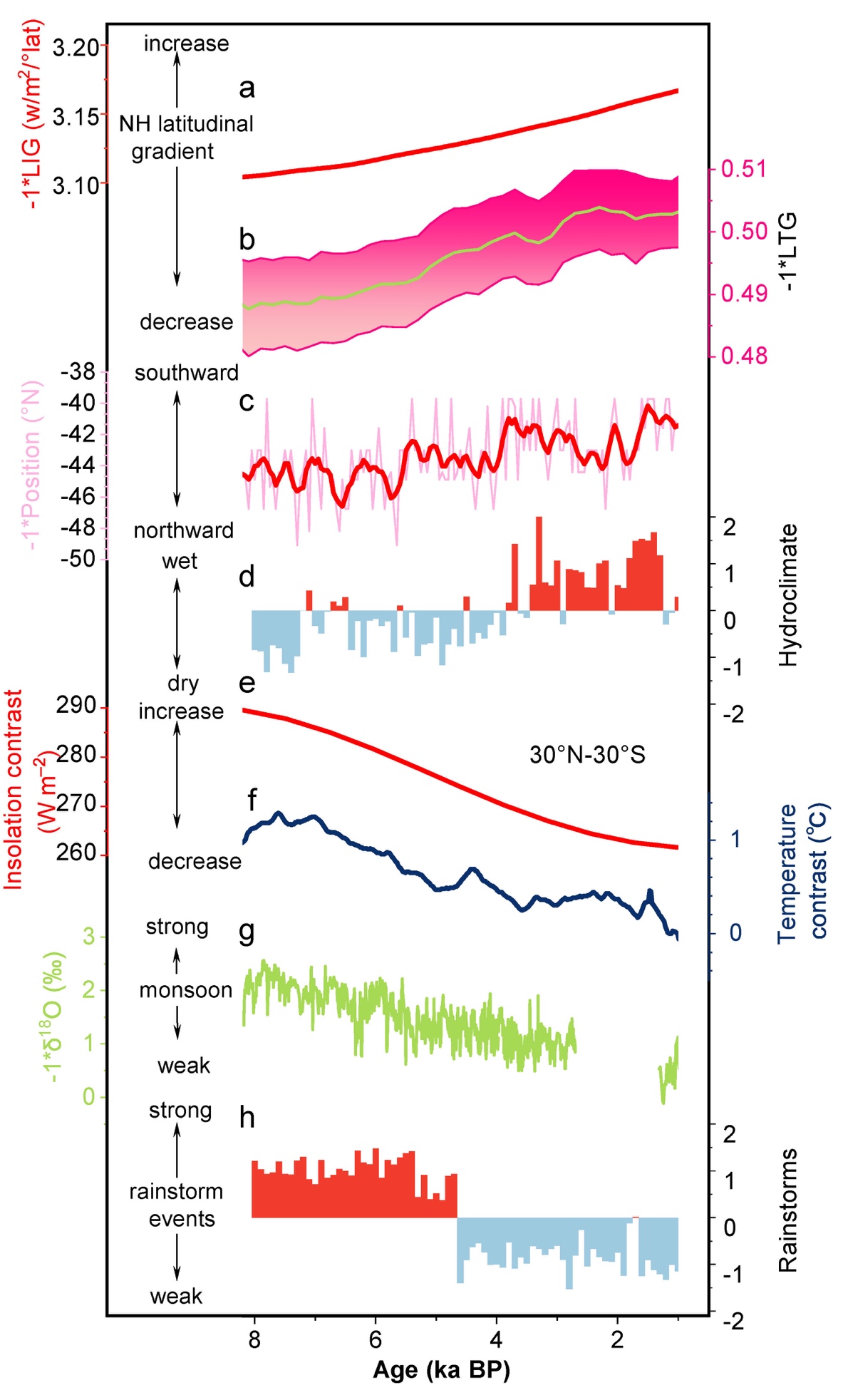 图3、由日照强度/温度梯度驱动的季风与西风的相互作用
