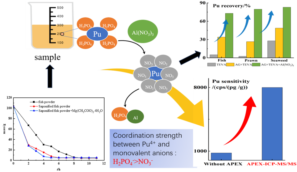 中国科学院地球环境研究所核环境安全与示踪研究团队,首先建立了一种大质量(千克级)海洋生物样品中钚的高效预处理、分离纯化和高灵敏度测量方法,实现了不同类型生物样品中239Pu240Pu的准确分析。该研究为福岛核污染水排放形势下,我国核环境安全综合评估提供了全新的分析方法,为海洋生物辐射安全及放射性核素示踪研究奠定了基础。