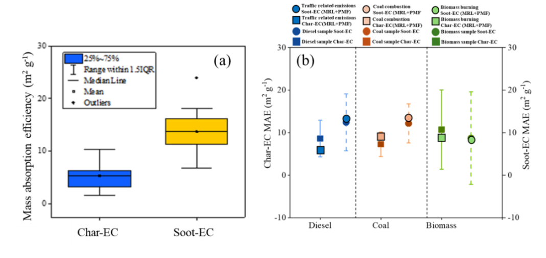 图1 高山环境(a)及关中城市环境中(b)char-EC和soot-EC的MAE