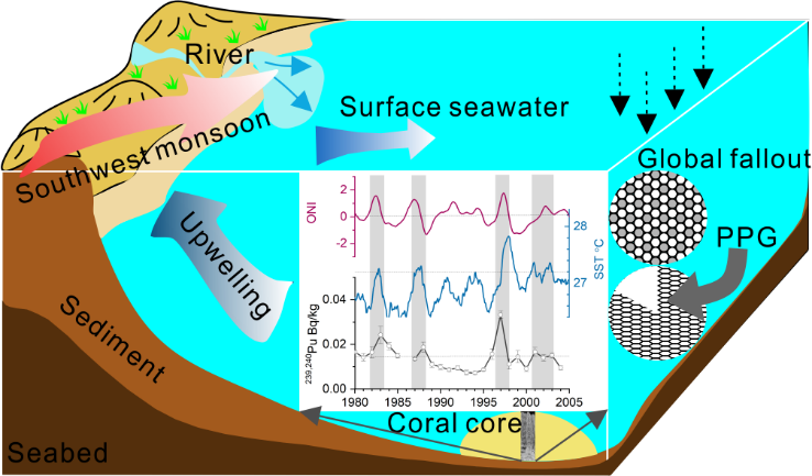 在全球气候变化加剧背景下,准确评估人工放射性核素的迁移、转化行为,及其对生态系统的辐射安全影响,揭示人工放射性核素对气候系统的响应变得至关重要。我国南海不仅受全球大气核武器试验沉降的广泛影响,美国太平洋核试验场释放的放射性物质可以通过洋流系统经吕宋海峡持续不断进入南海。与此同时,南海与西太暖池紧密相连,因此极易受厄尔尼诺和极端天气等事件的影响。但南海放射性核素的研究主要局限于水平和分布变化,气候系统的调控机制研究尚未见报道。