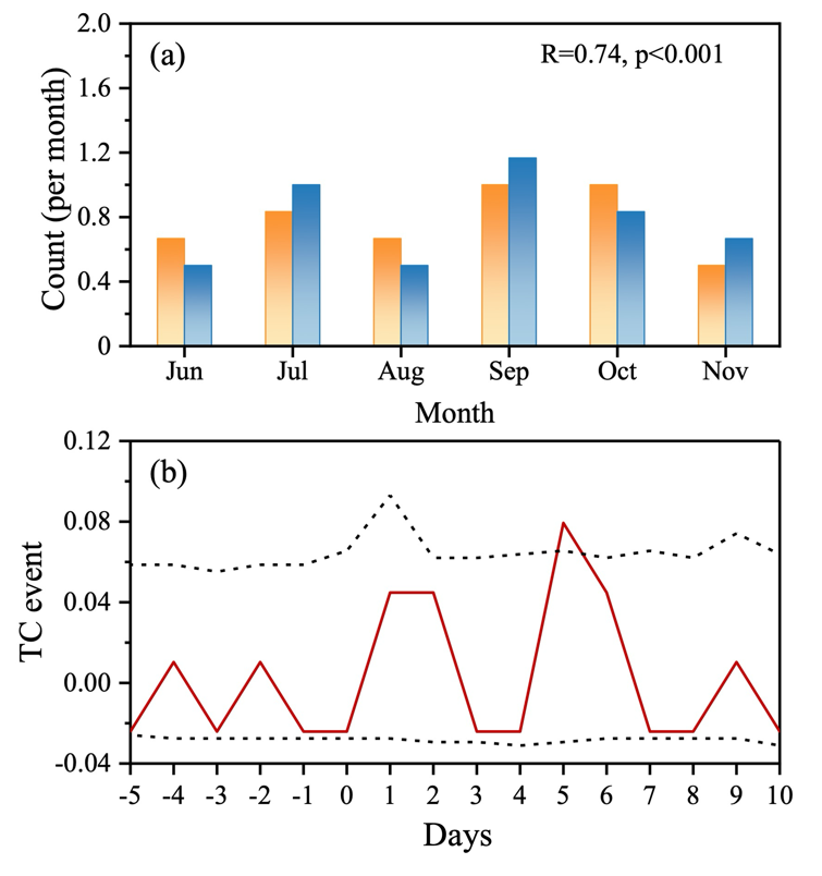 长期气候变化对热带气旋的影响机制仍是学界关注的热点问题。由于观测记录时间较短(不足100年),热带气旋变化趋势与全球变暖或自然变率之间的关系仍然存在争议,对于未来全球变暖趋势下的预测预估也具有很大的不确定。古气候记录是对现代观测资料的重要补充,但传统的古气候记录由于分辨率较低,难以识别发生在天-周时间尺度上的热带气旋事件。