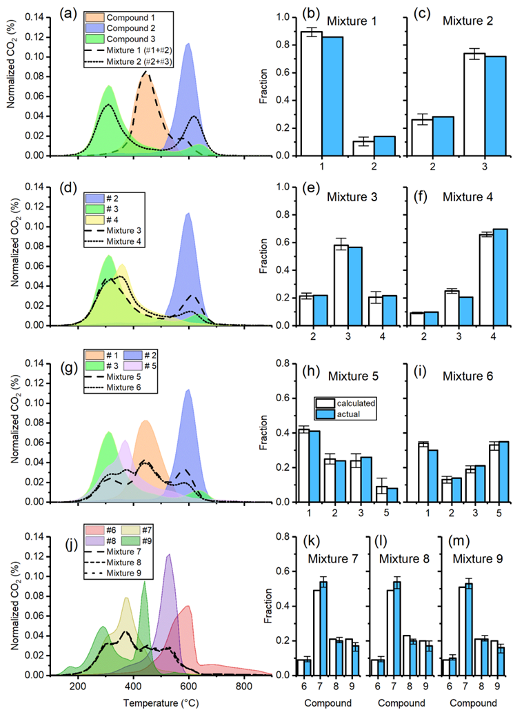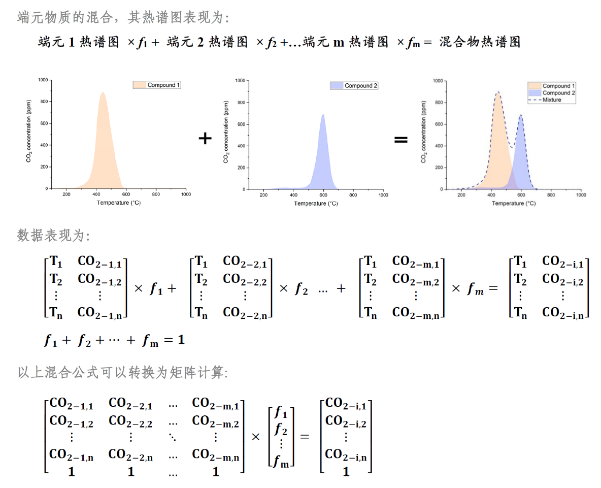 中国科学院地球环境研究所金章东研究团队,联合上海交通大学和西北大学,提出热裂解/氧化(Ramped Pyrolysis/Oxidation, RPO,图1)示踪有机碳来源的新手段。该团队建立了一种基于RPO热谱图(逐步加热有机物并记录其在不同温度下裂解/氧化速率的变化)的多端元混合模型,通过将端元物质的热谱图混合转变为矩阵计算,从而量化不同有机碳端元的贡献(图2)。