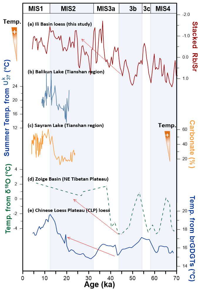 本项研究提出了Rb/Sr比值在中亚东北部黄土中可作为古温度的新解释,为理解干旱区气候—环境动力学过程提供了全新视角。不过,当前认识仍属于初步阶段,在未来的古气候重建应用中,还需通过多角度、多维度的验证工作进一步完善,以提升该指标的可靠性与适用性。