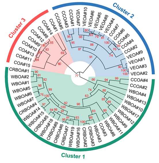 图3. 本研究和前人研究获得OA质谱的聚类分析结果。