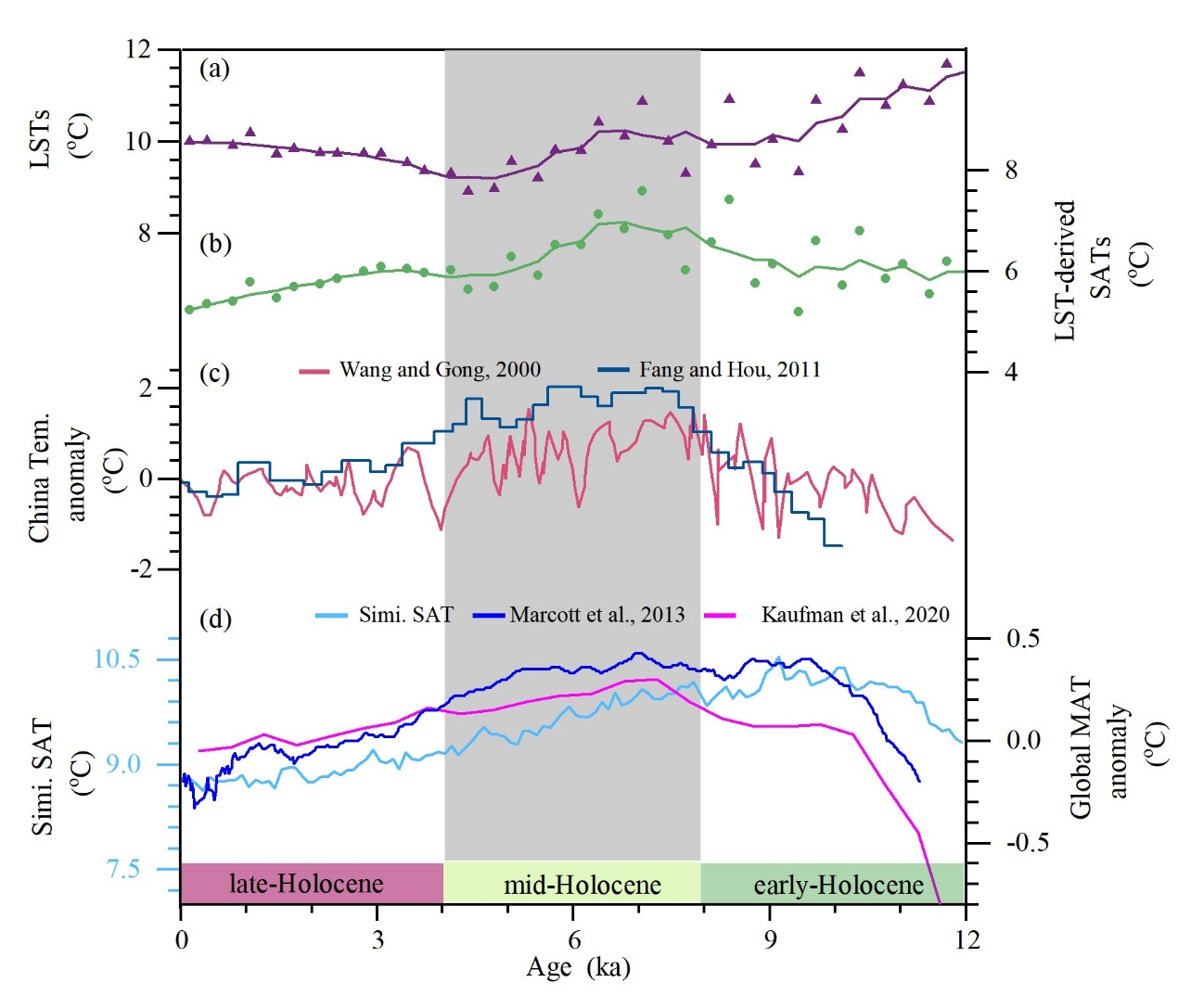 Hongxuan Lu*, Weiguo Liu, Huanye Wang, Xingxing Liu, Zeke Zhang, Shugang Kang, Yitao Liu, Zheng Wang, Weijuan Sheng, Xu Liu, Youbin Sun, Zhonghui Liu*. 2026. Inferring Holocene air temperatures from vegetation-corrected land temperatures, Global and Planetary Change, 257, 105266. https://doi.org/10.1016/j.gloplacha.2025.105266