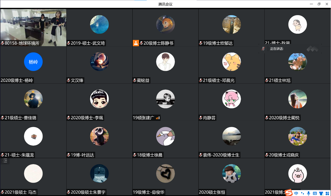 2022年5月31日上午,地球环境研究所学生会换届纳新大会在1103多功能厅及腾讯会议同步举行,综合办孙军艳、张英雯老师、2020届学生会部分成员和在所研究生参加会议。