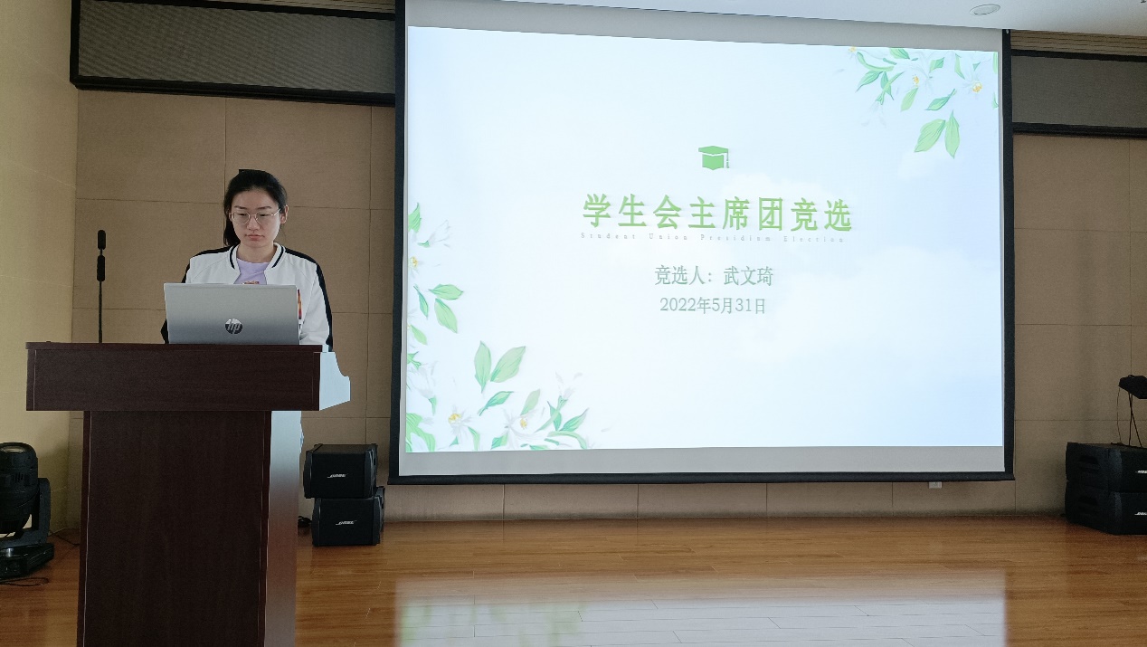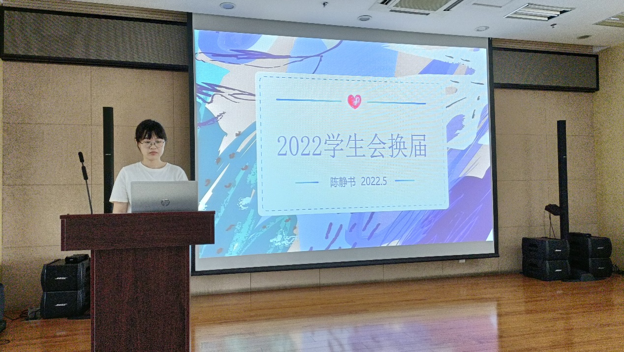 会议由2020届学生会副主席易庭楠主持。首先综合办主任孙军艳介绍了上届学生会克服疫情影响举办的多项活动,并对即将上任的新一届学生会表达了殷切的期望。之后,学生会副主席易庭楠对学生会结构与近两年的工作进行了汇报,号召在所研究生积极加入学生会。