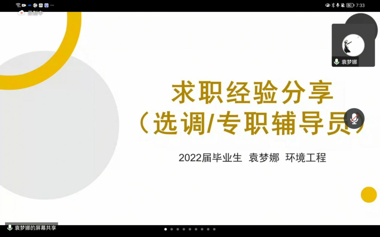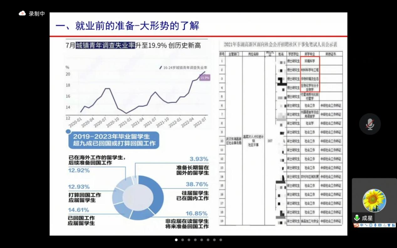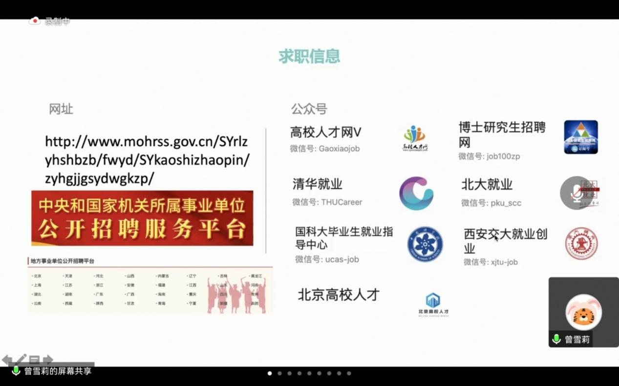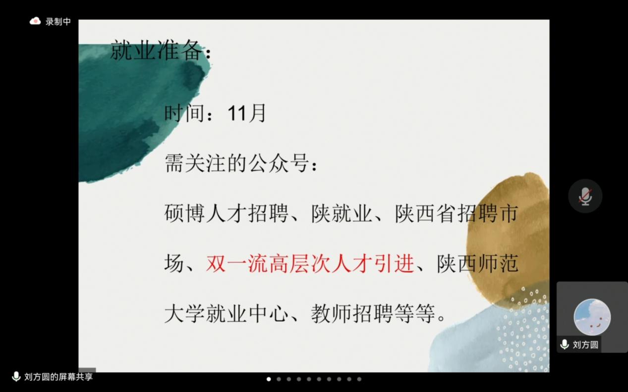 为了进一步促进地球环境所毕业生就业工作、加强研究生对当前就业挑战与机遇的认识、明确未来的职业规划、增强就业过程中的信心、提升笔试面试技巧,帮助同学们更加深入了解毕业后的职业选择、实现高质量就业,地球环境所人事教育处联合学生会举办了“职”引未来就业经验分享交流会活动。分享会于9月25日晚通过腾讯会议在线上进行,70余名研究生参加。人事教育处处长于学峰,主管研究生工作的张英雯老师参与了分享会。