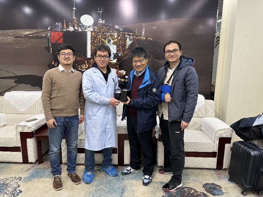 侯小琳、付云翀和范煜坤在国家天文台领取样品