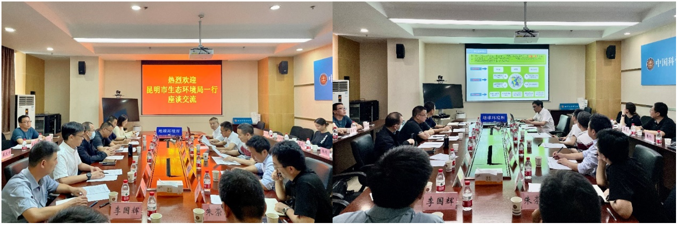 2023年7月12日下午,昆明市生态环境局陈军副局长带队调研中国科学院地球环境研究所,所党委书记、所长孙有斌、纪委书记孟繁东出席会议,科技外事处及粉尘与环境研究室十余位科研人员共同参加了座谈交流会。