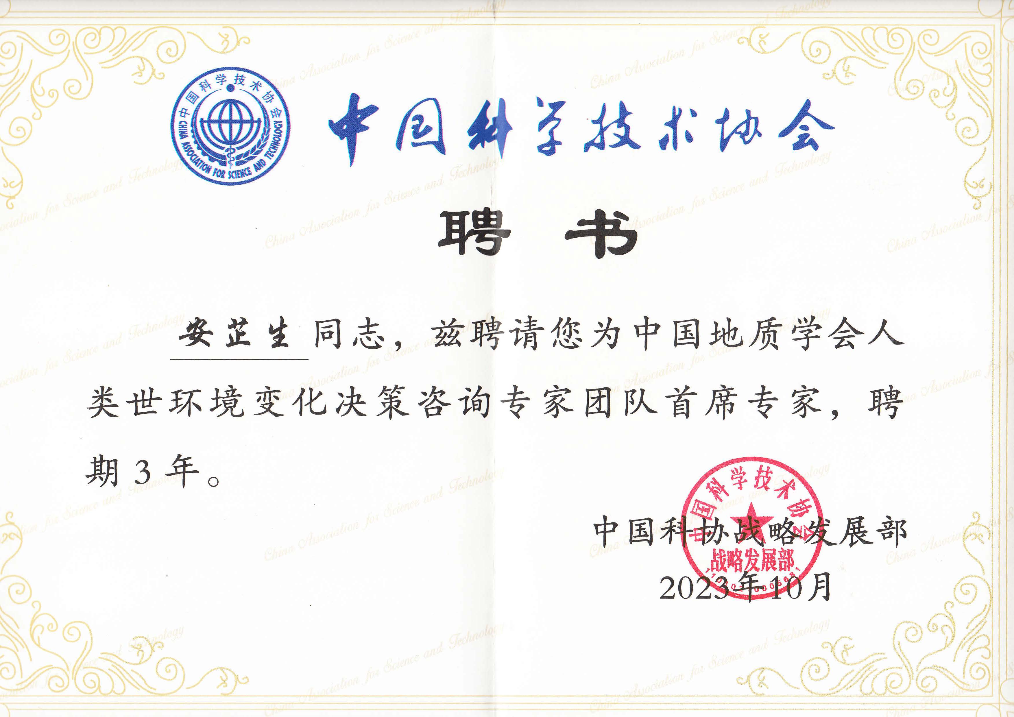 近日,中国科学技术协会遴选了中国科协决策咨询专家团队,经中国地质学会人类世研究分会推荐,以中国科学院地球环境研究所的安芷生院士和周卫健院士为首席科学家的团队受聘为中国地质学会人类世环境变化决策咨询专家团队。