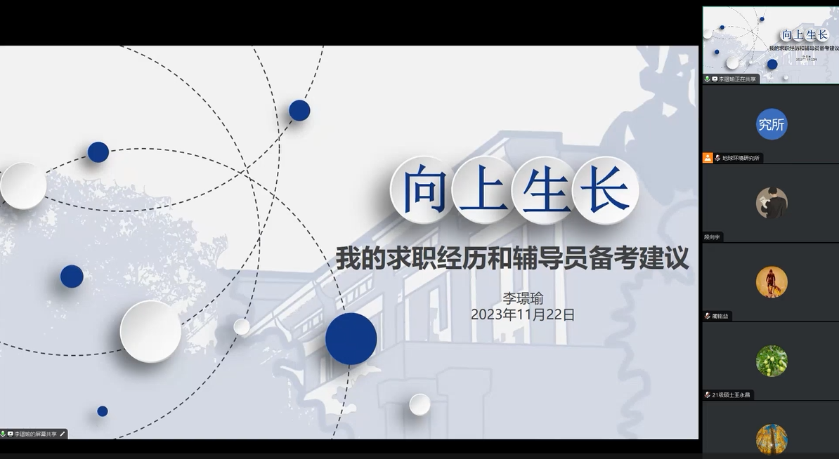 为进一步推进研究生毕业生就业工作,助力研究生明确自身职业定位,明晰就业形势,找准就业方向,提升就业技巧,地球环境所人事教育处、学生会于11月22日线上举办第二届“职”引未来就业经验分享会。