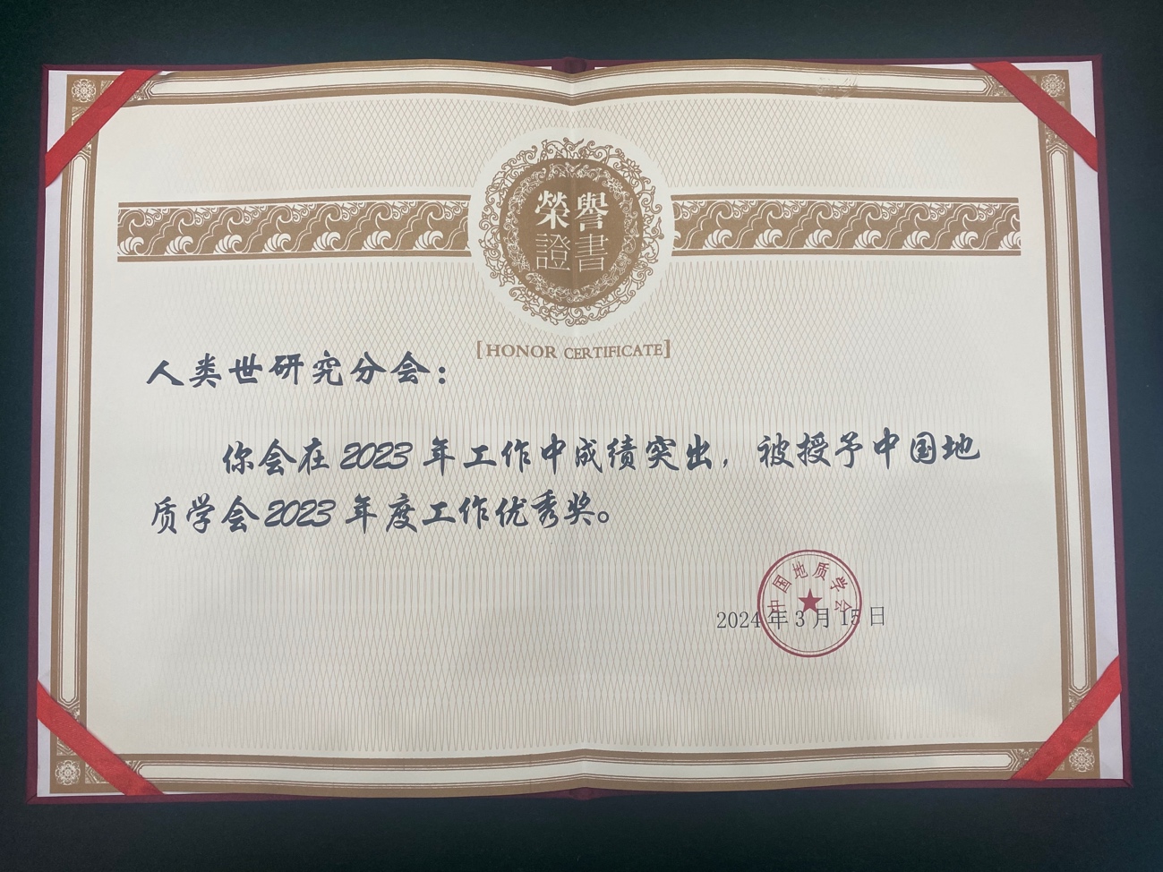中国地质学会人类世研究分会荣获2023年度中国地质学会工作优秀奖
