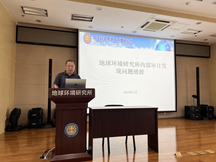 5月28日下午,地球环境研究所组织召开党纪学习教育警示教育会,通报审计发现问题,深刻剖析违纪典型案例,注重用身边事教育身边人,让党员、干部受警醒、明底线、知敬畏。所领导班子成员,中层干部,各研究所主任、各支部书记支委,国重党总支的五个党支部以及行政管理党支部全体党员参加会议,会议由纪委书记孟繁东主持。