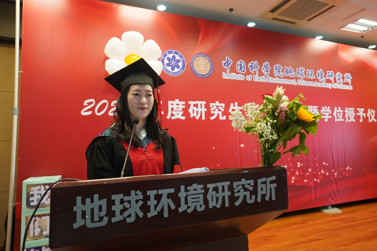 毕业生代表宗秀兰博士分享了自己的科研求学之路——既有在野外采样时的艰辛,也有在实验室的迷茫,但更多的是取得成果后的喜悦。她对研究所的培养和导师的悉心指导表达了深深的感激,并祝愿所有毕业生前程似锦。