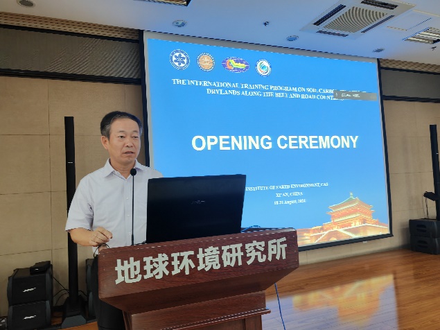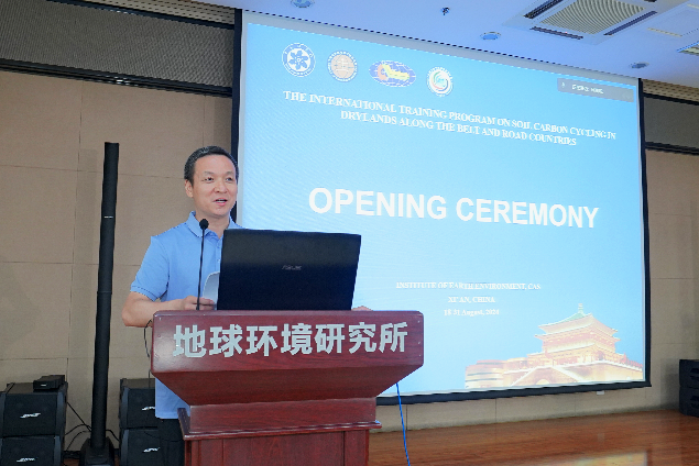 西安市科学技术局副局长李建勋在致辞中表示,西安是座承载着数千年历史的文化名城,不仅是古代丝绸之路的起点,更是今天共建“一带一路”的重要节点城市。土壤碳循环作为全球碳收支的重要组成部分,对于调节气候变化、维护生态平衡具有不可替代的作用,期望培训班借助西安这个共建“一带一路”科技合作开放创新高地,共同探讨干旱区土壤碳循环前沿科学问题,建立起跨越国界、学科与行业的深厚友谊与合作网络,共同为推动全球生态环境保护与可持续发展贡献智慧与力量。