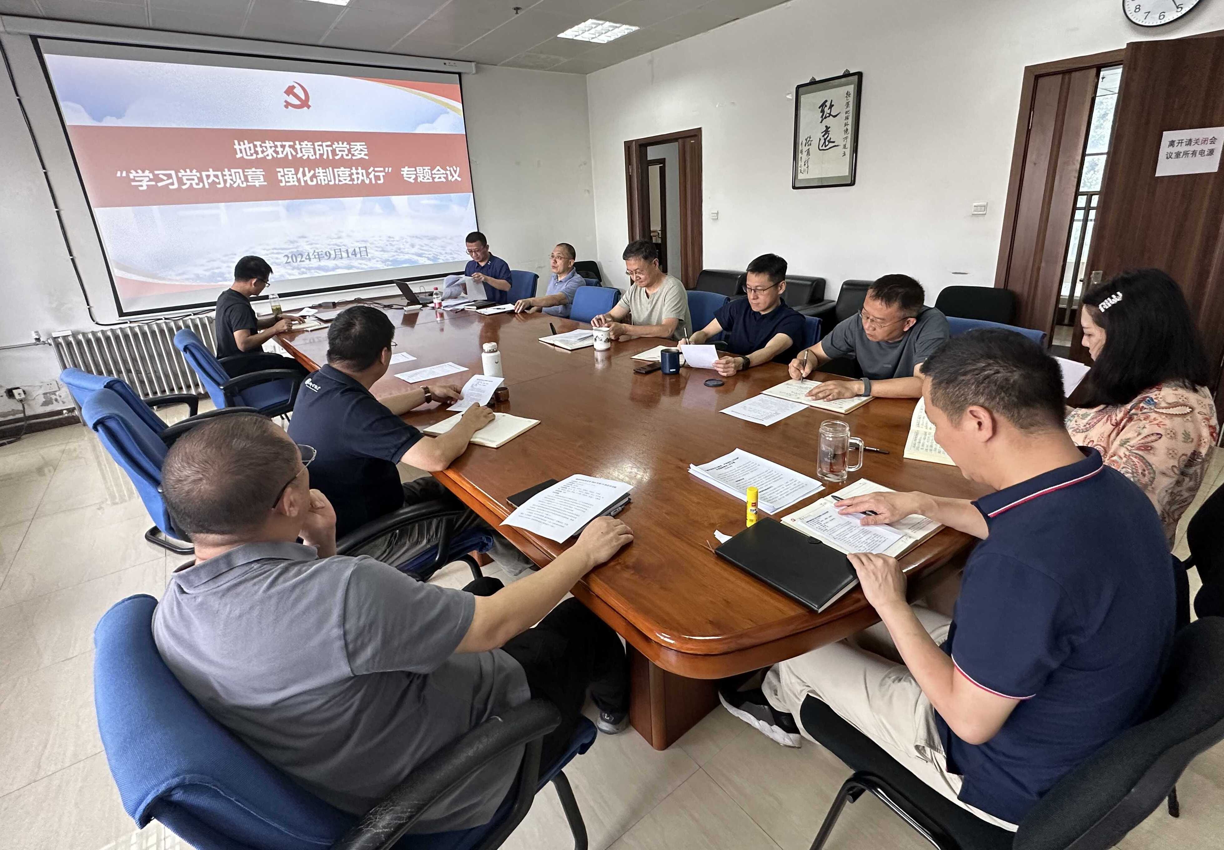 地球环境所党委召开“学习党内规章 强化制度执行”专题会议