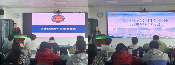 人事教育处和科技外事处分别介绍了研究所概况和抢占科技制高点目标和进展,纪检监督审计室宣贯了科研诚信建设工作,综合管理处、财务资产处、条件保障处、人事教育处、科技外事处等管理部门分别介绍了各自业务范围、办事流程和相关业务联系人。科技外事处和人事教育处还就当前我院开展的“三项工作”进行了宣贯。