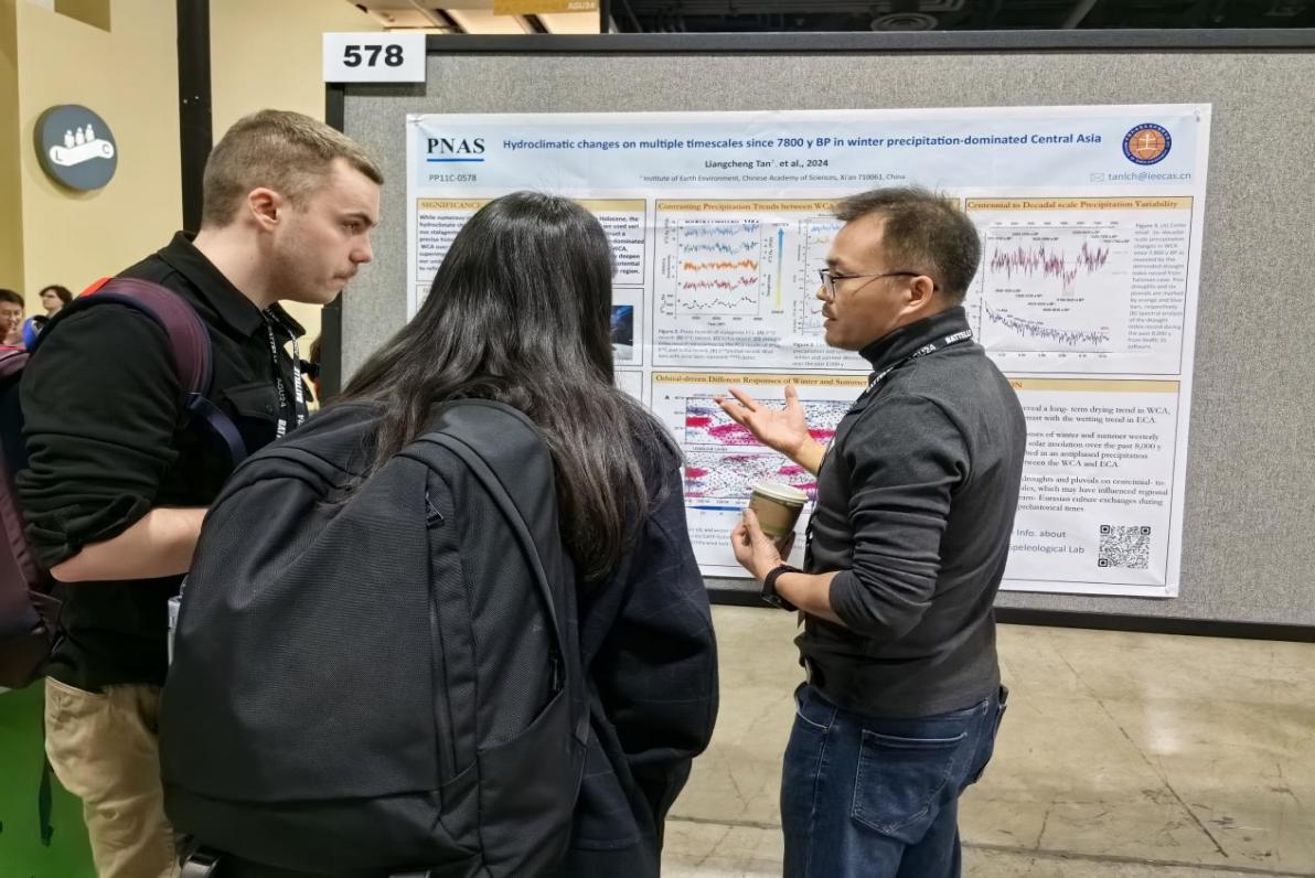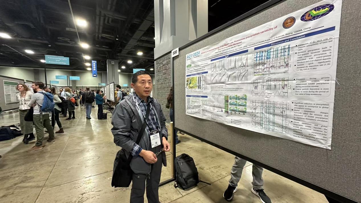 中国科学院地球环境研究所一行7人参加了本次会议并作口头和展板报告。谭亮成研究员作为召集人主持了“Advanced Understanding of Tropical-Subtropical Hydroclimate Changes During the Pleistocene, Holocene, and Anthropocene”分会场,并作了主题为“Hydroclimatic changes on multiple timescales since 7800 y BP in the winter precipitation-dominated Central Asia”的展板报告;宋友桂研究员作了主题为“Dominant precessional forcing of the Middle-Late Pleistocene precipitation variability of East Summer Asian Monsoon”的展板报告;敖红研究员作了主题为“Concurrent Asian Monsoon Strengthening and Early Modern Human Dispersal to East Asia during the Last Interglacial”的口头报告;胡勇副研究员作了主题为“Floodplain Greening Alters Flood and Ecology in a Large Dammed River”的口头报告;李彦祯助理研究员作了主题为“Mercury deposition in central China from the Last Glacial Maximum to the early Holocene recorded in an accurately-dated stalagmite”的展板报告。