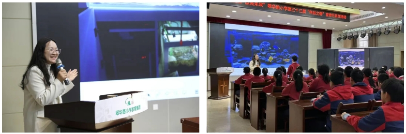 4月2日,地球环境研究所副研究员刘成程为翠华路小学师生带来科普报告《一叶可知秋意,一壳可解风雨》,刘博士以砗磲这一神秘而瑰丽的海洋生物为切入点,引领同学们走进了一个充满奇幻与奥秘的科学世界。刘博士向同学们介绍了砗磲在珊瑚系统中的重要地位,深入浅出地揭示了砗磲“不迁徙”、雌雄同体、砗磲与虫黄藻的共生的独特特性,展现了自然界中生物间相互依存、和谐共生的智慧与奥秘。从南海北部现代砗磲面临着濒危的境地引发大家对生态保护的深刻思考,号召同学们珍爱生命,保护海洋环境,让砗磲这一美丽的海洋生物能够继续繁衍生息。