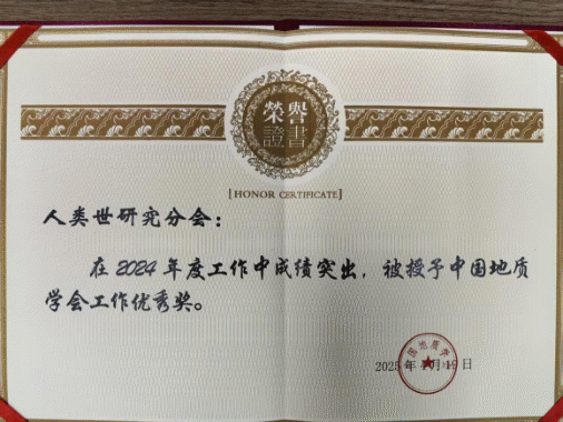 中国地质学会人类世研究分会荣获2024年度中国地质学会工作优秀奖