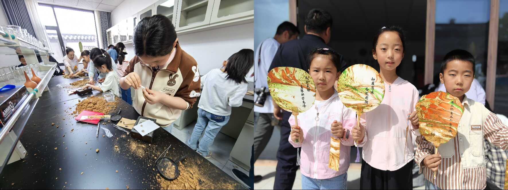 最令孩子们雀跃的是实践环节:在专业指导下,他们化身"小小科学家",拿着放大镜、镊子在黄土中挖掘蜗牛化石并做成形式多样的文创摆件,亲自动手在漆扇上绘制红黄交替的黄土-古土壤序列韵律,还沿着老一辈黄土科学家科学考察路线,实地学习领悟黄土地质、黄土生态、黄土精神的科学追求和使命信仰。