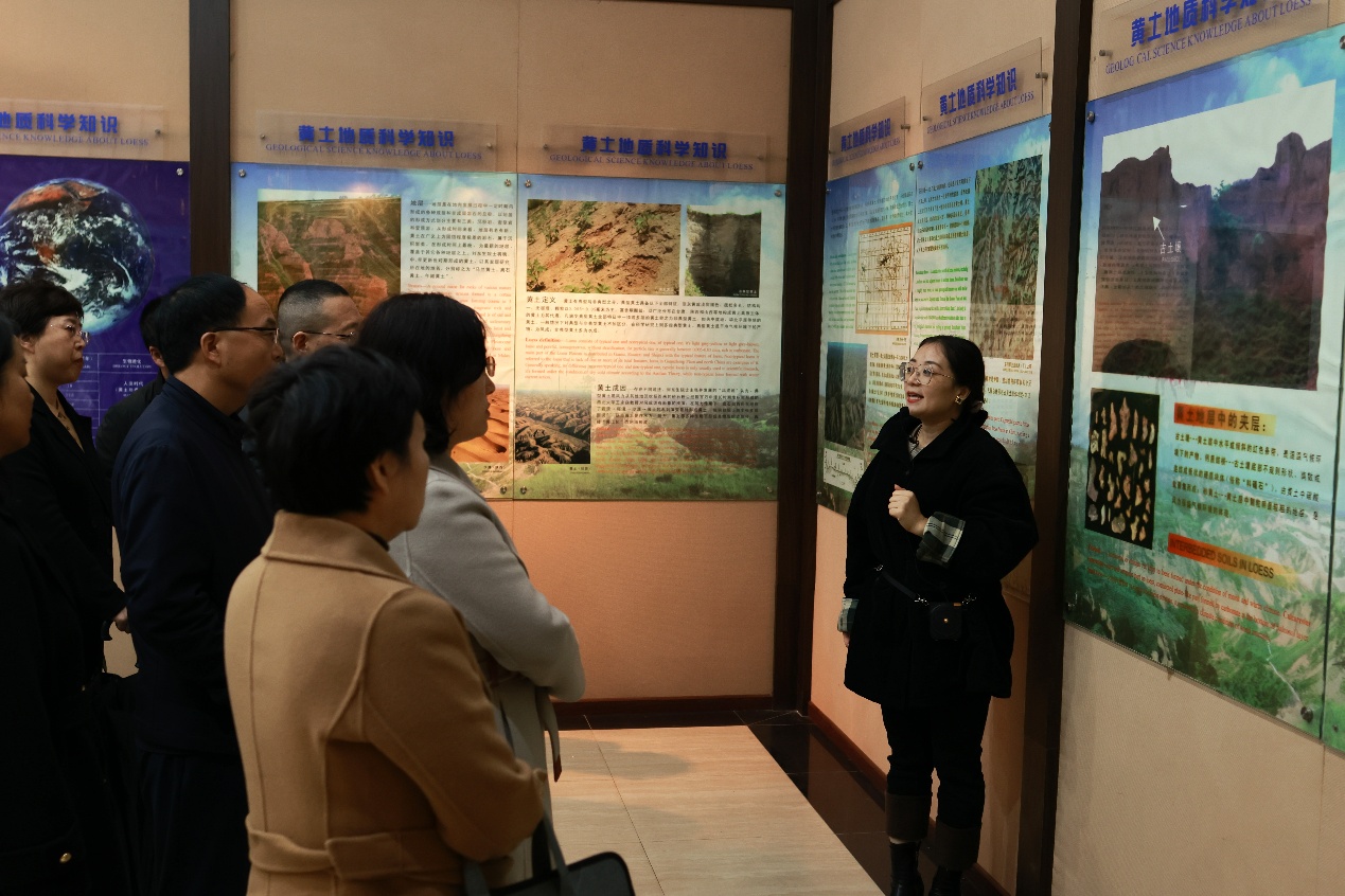培训班一行首先在2024年中国科学院科普讲解大赛一等奖获得者王娟的带领下,来到科学家精神教育基地展厅调研。一张张充满年代感的照片记录了科研工作者们扎根黄土、艰苦奋斗的峥嵘岁月;一件件躺在展柜里的老物件诉说着他们克服重重困难、勇攀科技高峰的感人故事。在生动的讲解中,学员们切身感受了安芷生院士等老一辈科学家“把旗帜树在黄土地,把论文写在黄土地,把人才留在黄土地”的使命担当,沉浸感悟黄土精神“如履薄冰、奋发图强”中的家国情怀。随后,学员们考察院士工作站科研实验楼建设情况及创新成果展,详细了解黄土高原站、院士工作站服务国家地方科技需求示范成效,体验科学家精神弘扬、科学普及等方面的组织创新形式,深刻理解一代又一代黄土追梦人不忘初心、牢记使命、为国所需、薪火相传的“国家队、国家人,心系‘国家事’、肩扛‘国家责’”国之大者定位使命。最后,黄土高原站向到访学员们分享了院士工作站、科学家精神教育基地、科普教育基地 “12345”工作法建设经验,全方位展示黄土高原站深挖“黄土精神”内涵、讲好“黄土精神”故事、建强“黄土精神”品牌的特色经验做法,并邀请大家共同唱好新时代科技创新与科学普及“大合唱”。