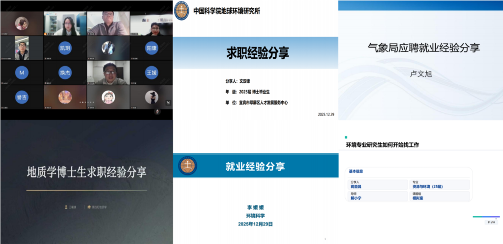 为持续推动研究所毕业生就业指导与服务体系建设,助力研究生准确把握就业趋势、科学规划职业路径、提升求职核心竞争能力,最终实现高质量就业。12月29日,地球环境所人事教育处联合学生会线上举办第四届“职”引未来就业经验分享会,80余名研究生踊跃参会。