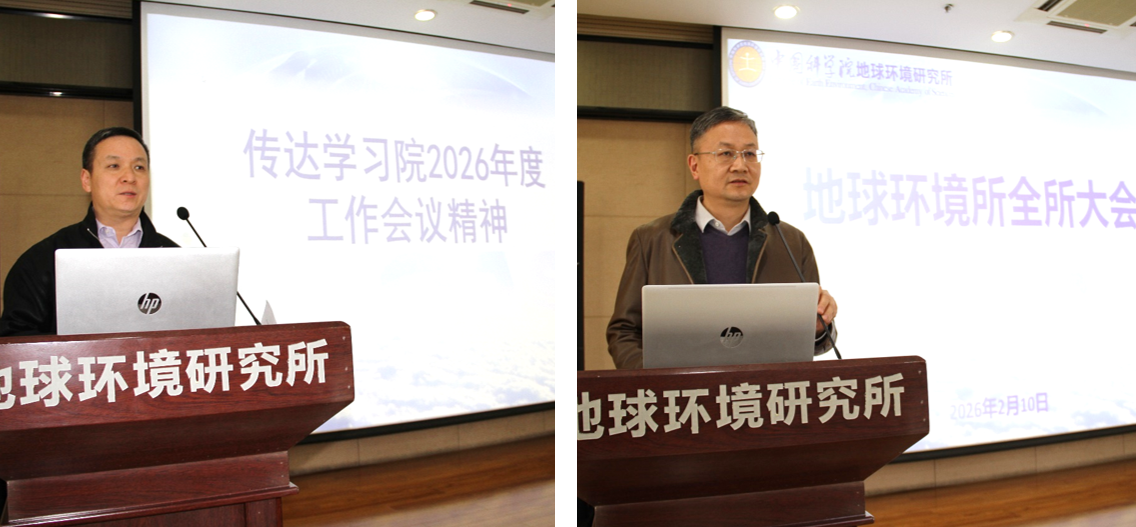 2026年,我们正处在一个机遇与挑战并存的关键时期,地球环境所将全面贯彻落实院工作会议精神,统一思想、凝聚共识,开拓进取、砥砺前行,向历史规律找新机、向地球深部要答案,共同推动研究所各项事业行稳致远,奋力开创“十五五”改革创新发展新局面,为加快实现高水平科技自立自强和建设科技强国作出新的更大贡献!