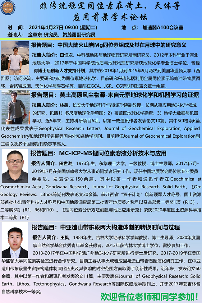 4月27日非传统稳定同位素在黄土、天体等应用前景学术论坛