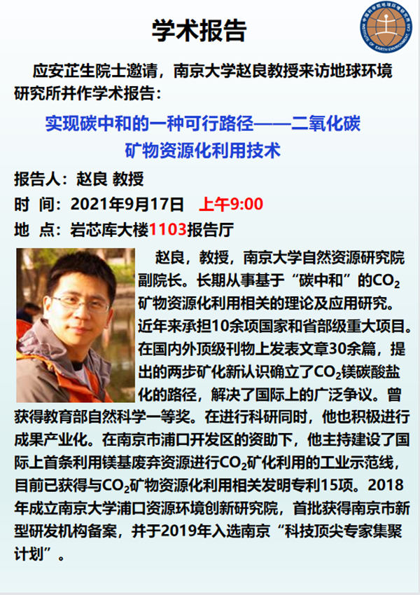 中国科学院地球环境研究所(以下简称“地球环境所”)成立于1999年,前身是1985年成立的中国科学院西安黄土与第四纪地质研究室,是中国科学院知识创新一期工程中唯一升格为研究所的单位。 地球环境所以“探索地球环境奥秘、服务生态文明建设”为使命,瞄准地球科学科技前沿,开展多尺度气候环境变化机理研究,致力于为地球系统科学发展做出创新性贡献,面向人与自然和谐共存的重大需求,为黄土高原及我国西部生态屏障建设提供战略科技支撑。 地球环境所秉承“如履薄冰、奋发图强”的黄土精神,扎根西部、砥砺前行,提出了一系列原创理论,使中国黄土成为国际公认的全球变化三大支柱之一,不断引领黄土与全球变化研究。研究成果8次获国家自然科学奖,3次入选中国科学十大进展。黄土与第四纪地质国家重点实验室连续7次评估优秀,研究所两次国际化评估中被认定为“世界级的大陆环境变化研究中心,具有世界级研究水平”。