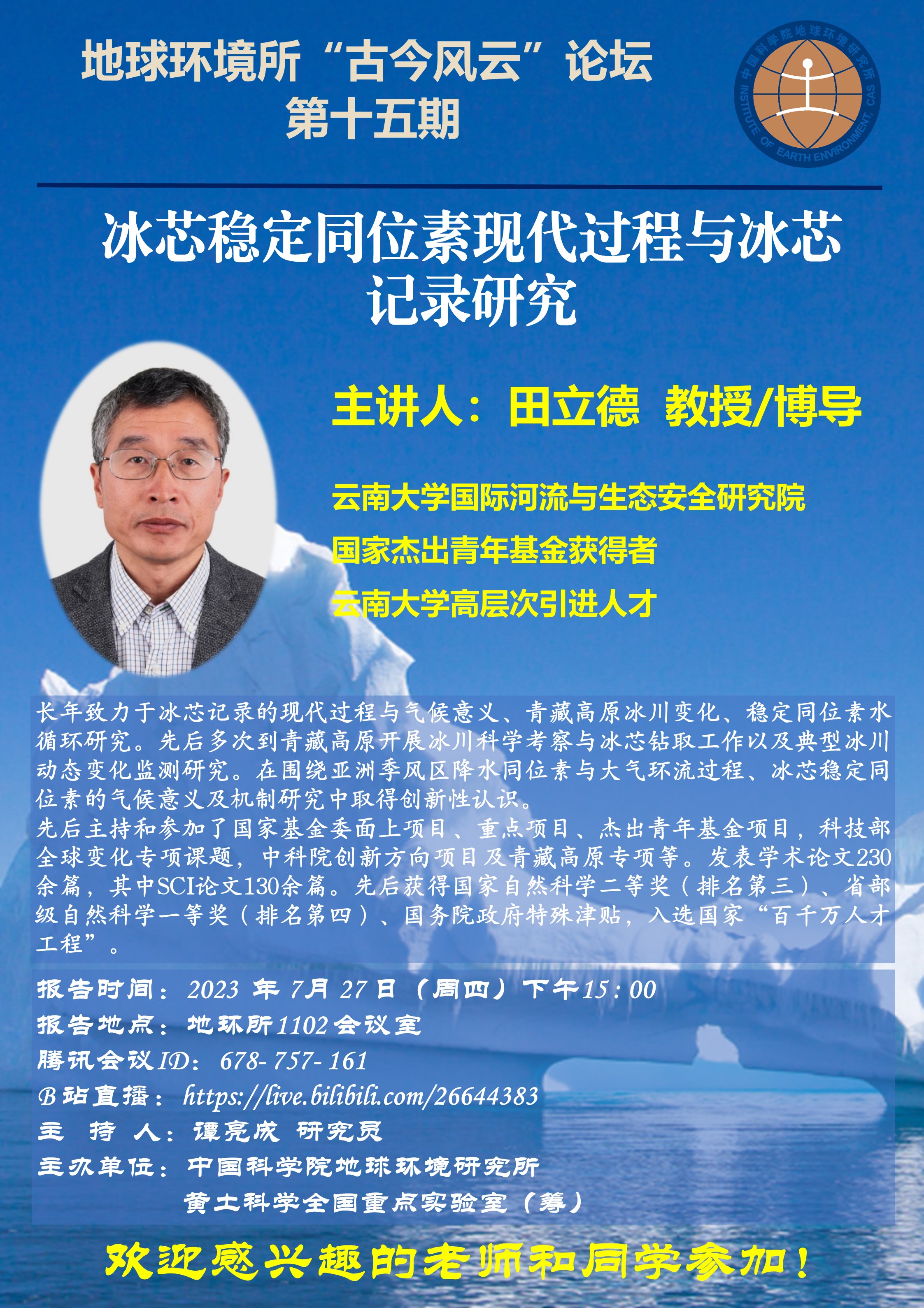 地球环境研究所“古今风云”论坛第十五期-田立德教授学术报告(7月27日)