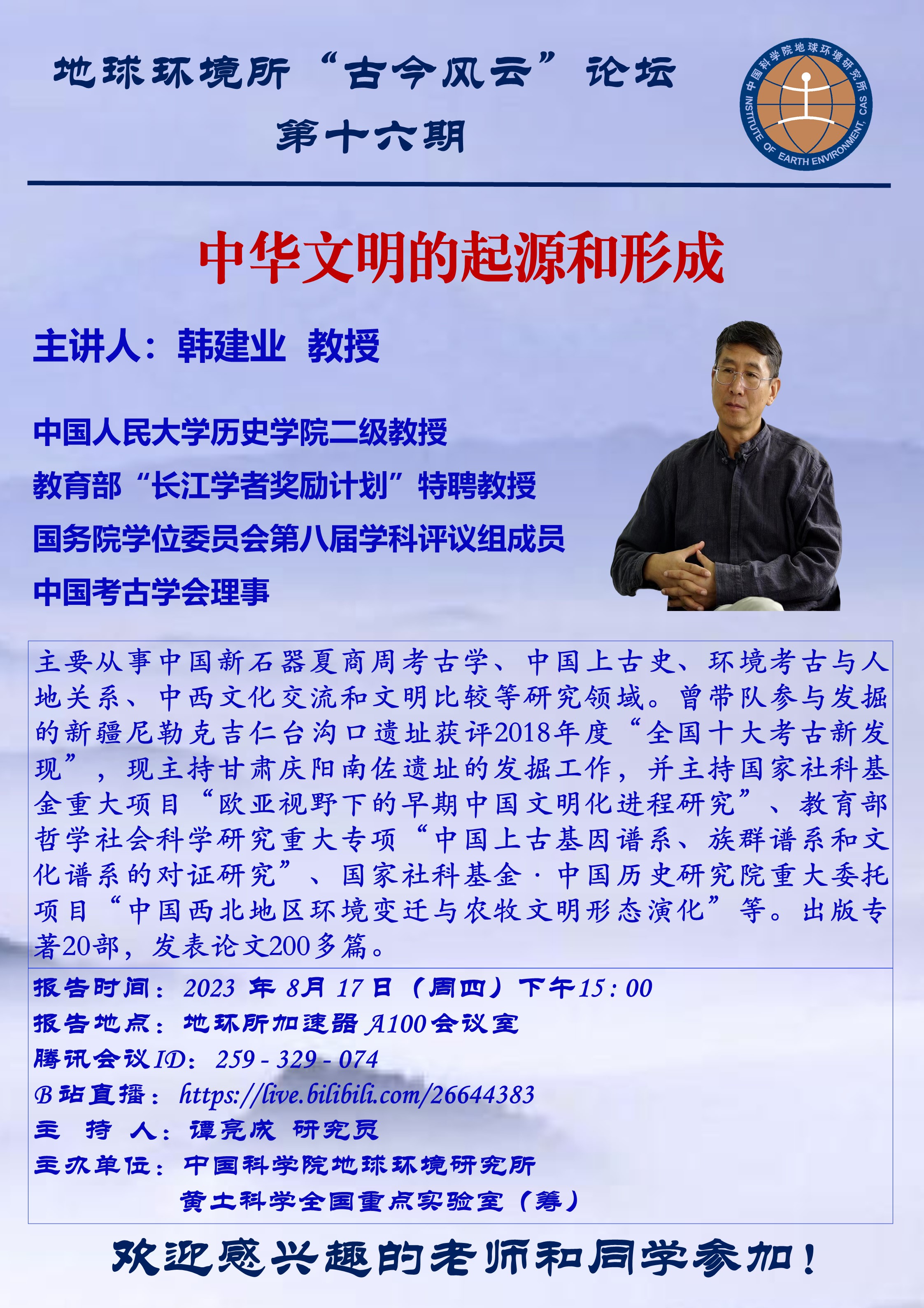 地球环境研究所“古今风云”论坛第十六期-韩建业教授学术报告(8月17日)