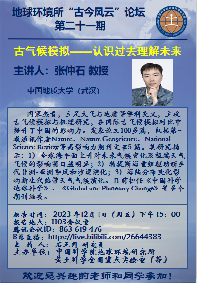地球环境研究所“古今风云”论坛第二十一期-张仲石教授学术报告(12月1日)