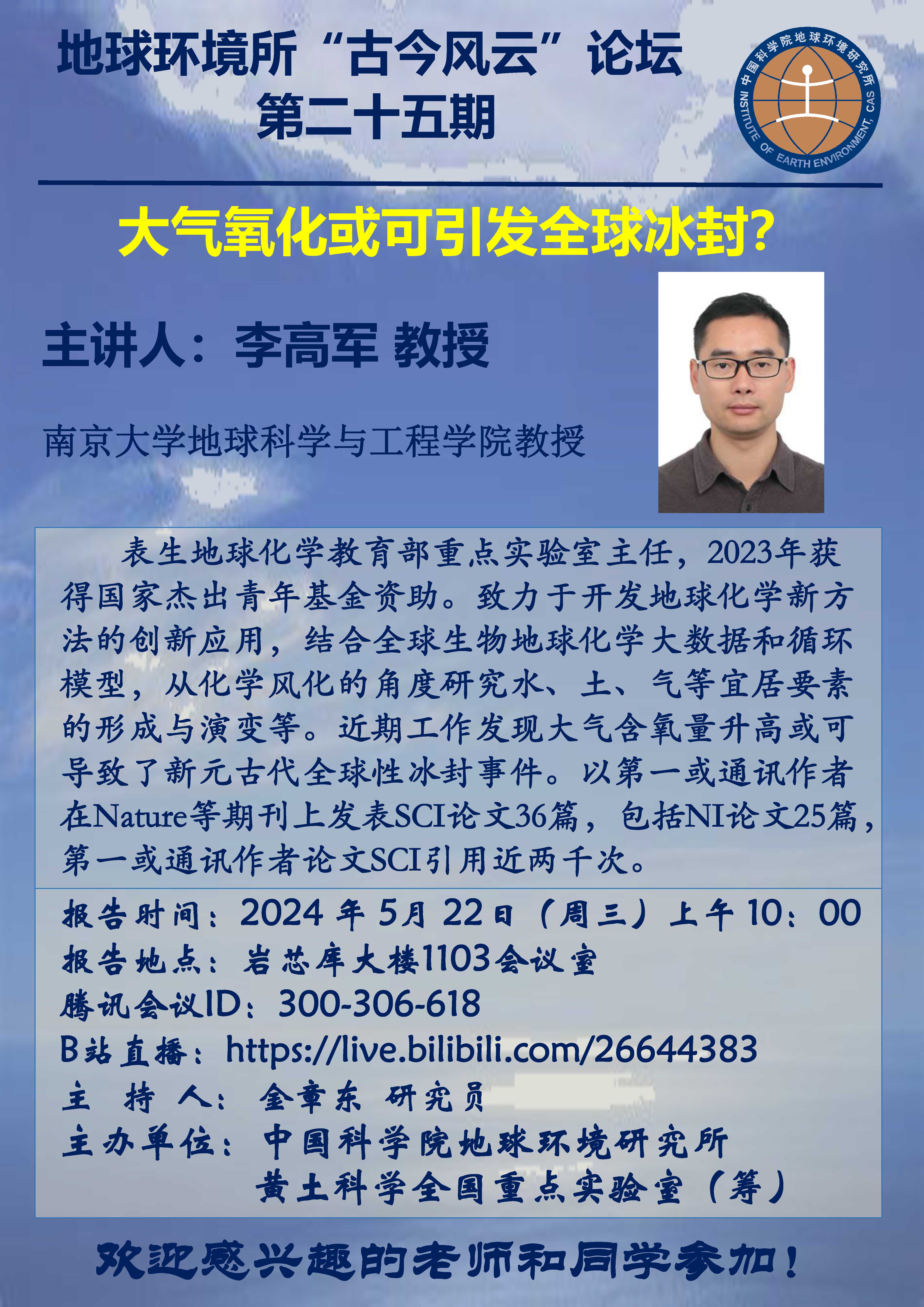 地球环境研究所“古今风云”论坛第二十五期-李高军教授学术报告(5月22日)