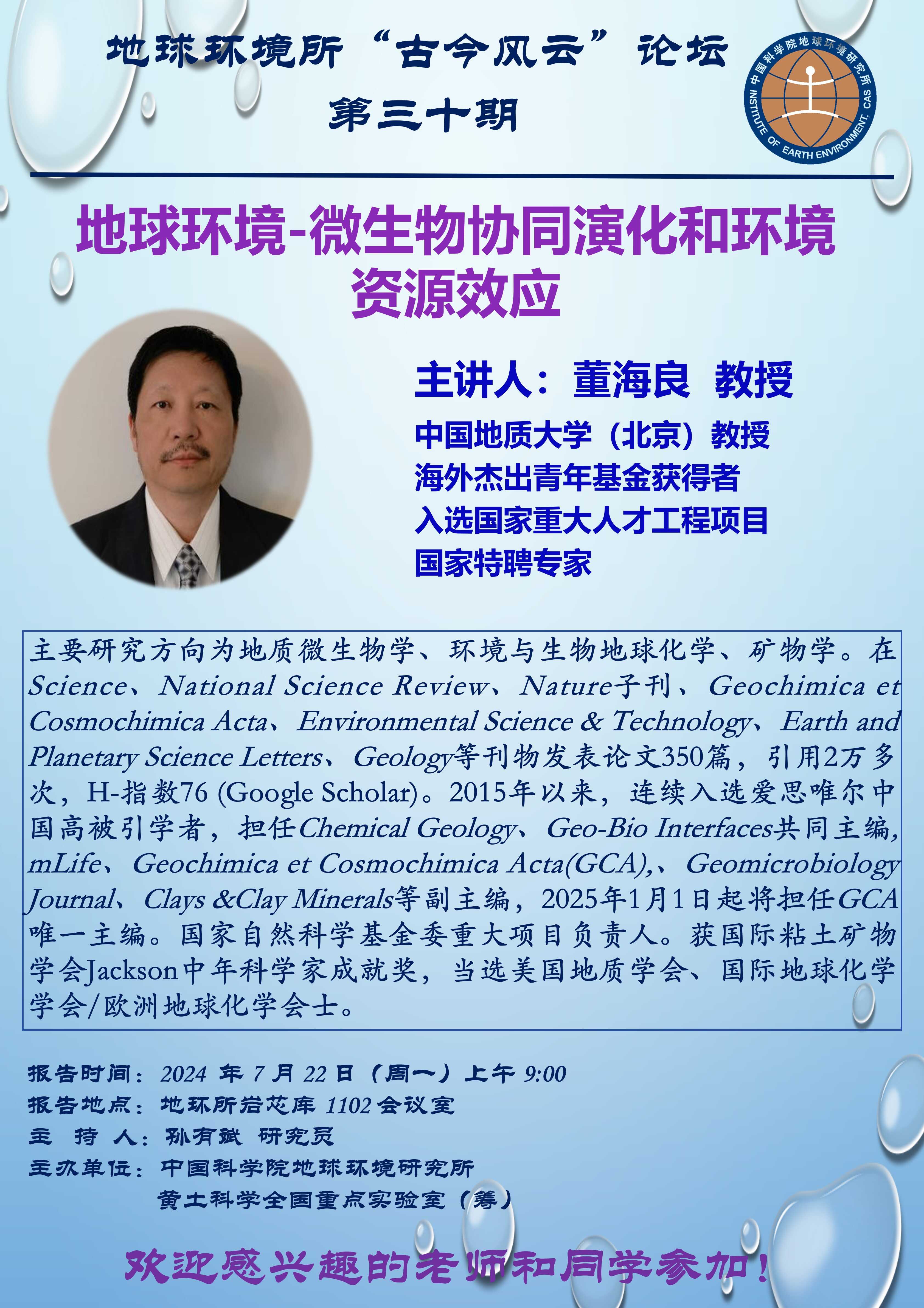 地球环境研究所“古今风云”论坛第三十期-董海良教授学术报告(7月22日)