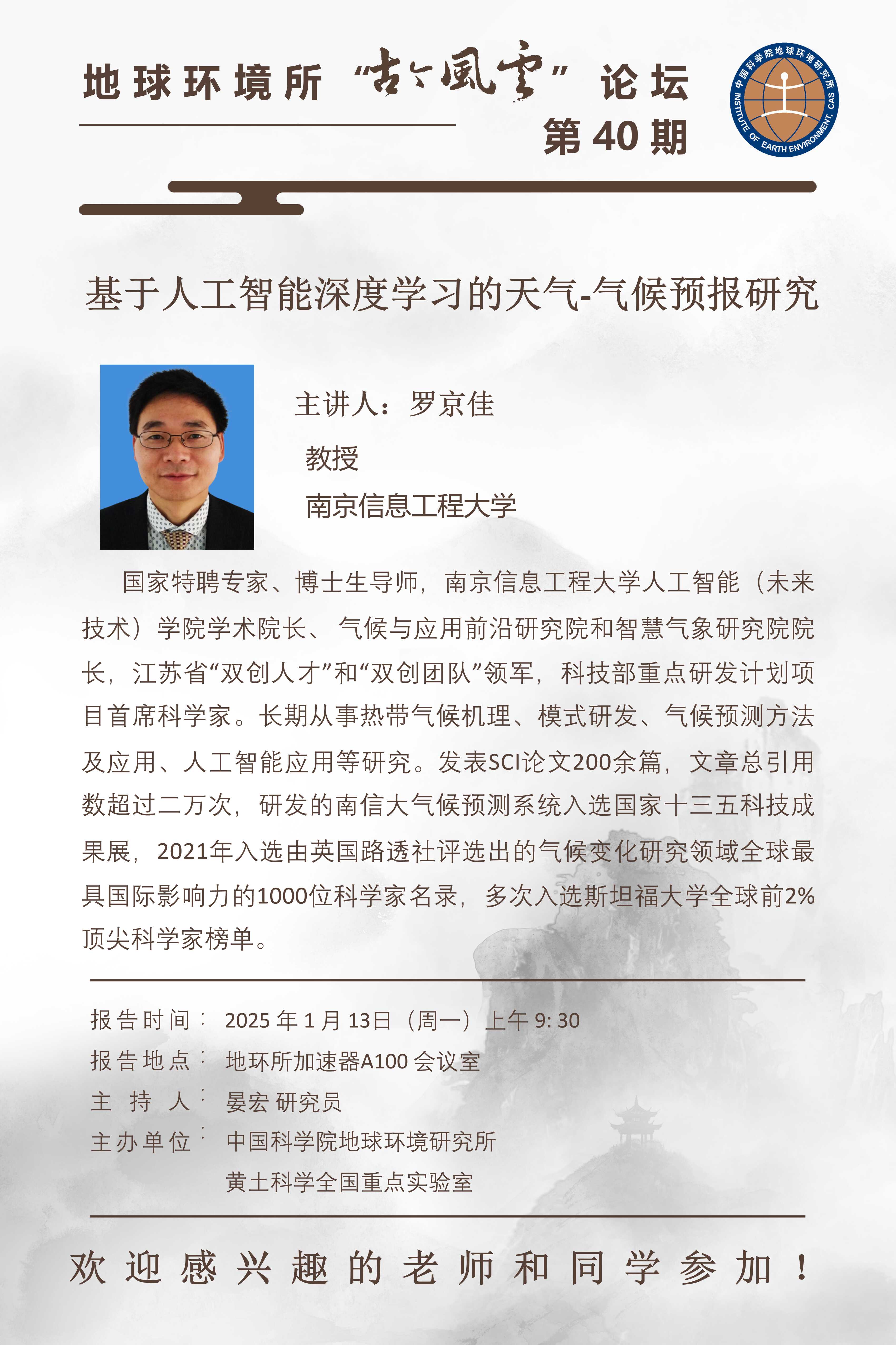 地球环境所“古今风云”论坛第四十期-罗京佳教授学术报告(1月13日)