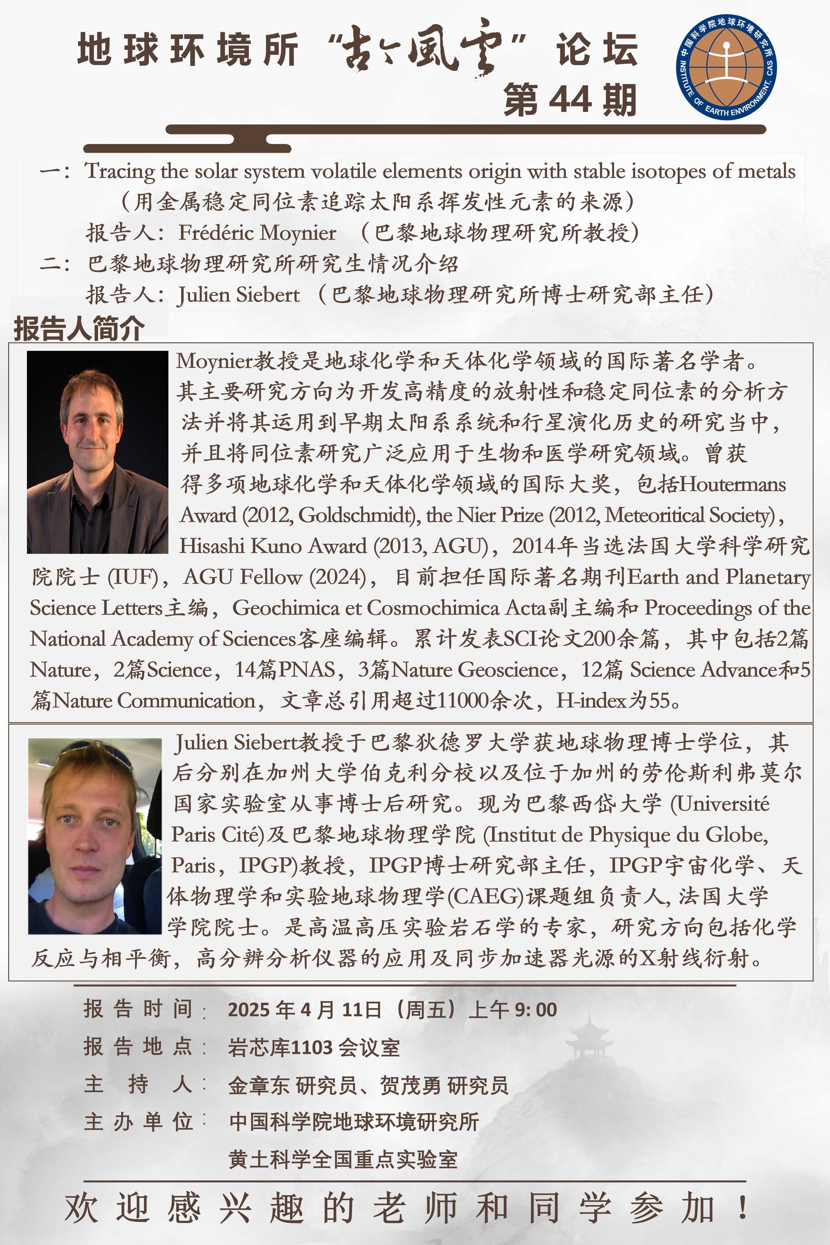 地球环境所“古今风云”论坛第四十四期——学术报告(4月11日)