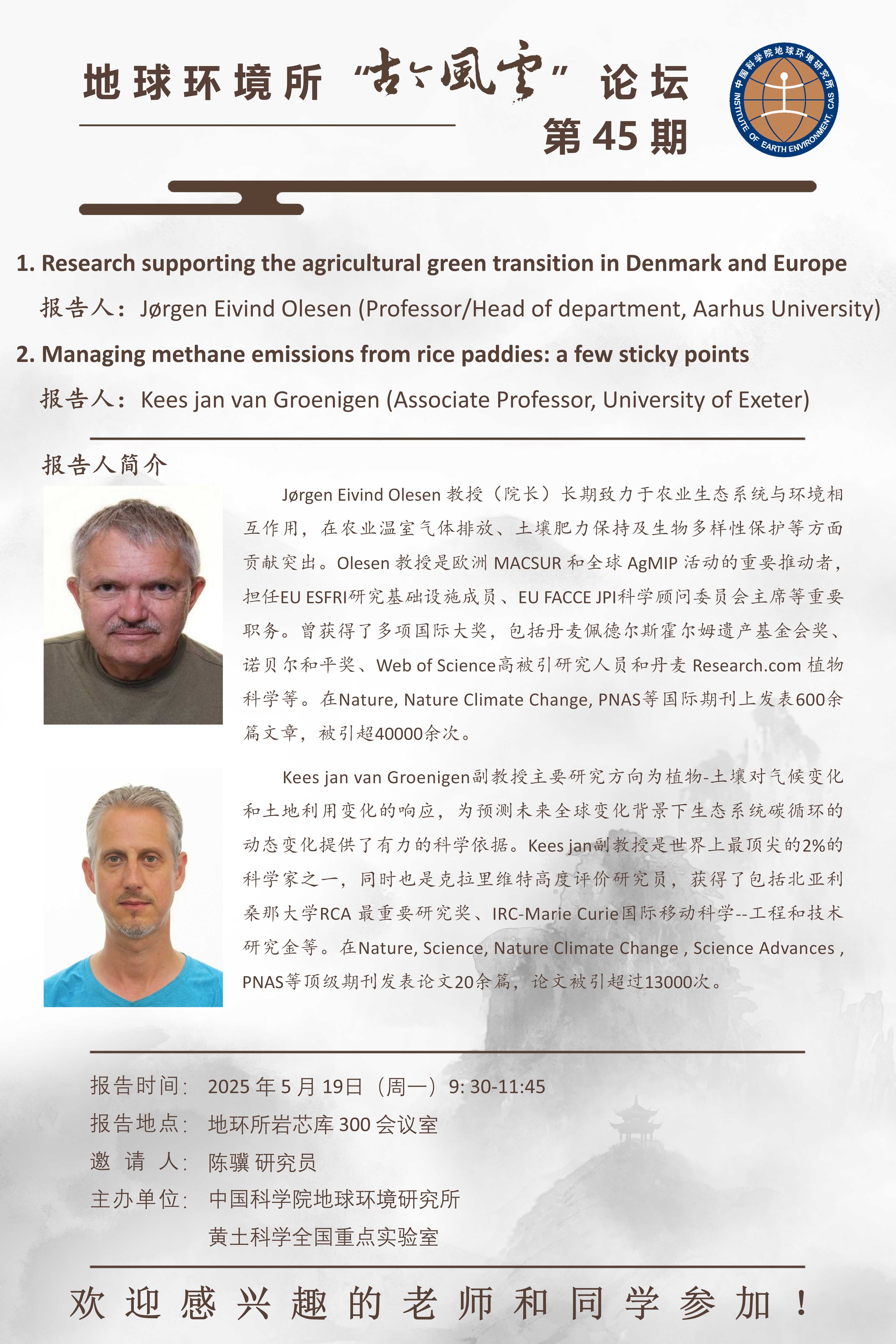 地球环境所“古今风云”论坛第四十五期——学术报告(5月19日)