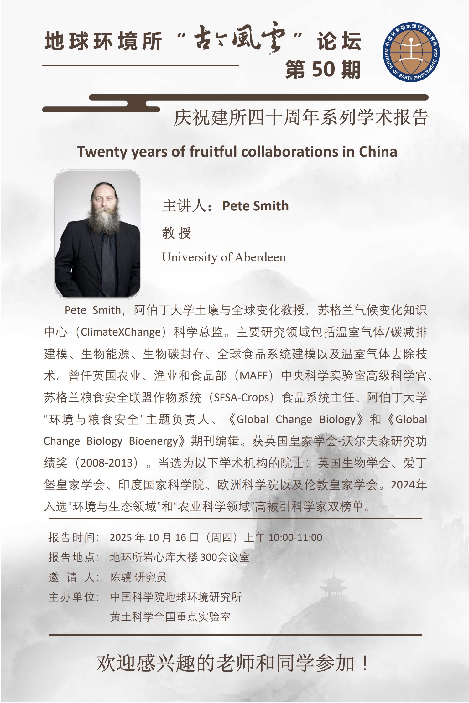 地球环境研究所“古今风云”论坛第五十期——学术报告(10月16日)