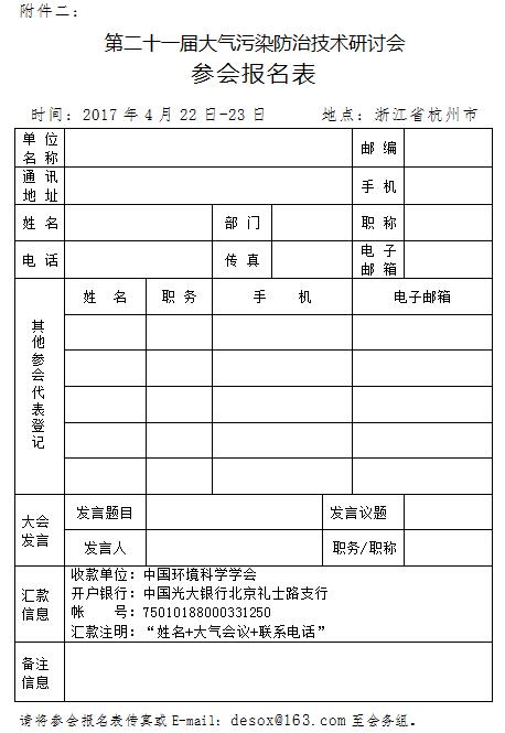 关于召开第二十一届大气污染防治技术研讨会征文与参会报名的通知