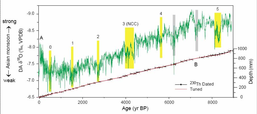 倒二冰消期季风千年尺度气候变率类似于末次冰期,但振荡幅度明显小于末次冰期中的