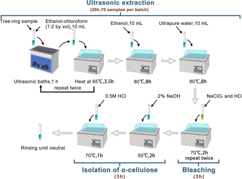图1 改进方法提取树轮α-纤维素的处理流程。